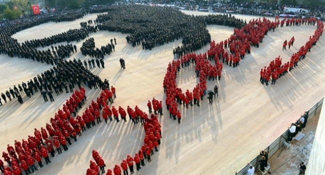 Konuşmanın ardından piyanist Fazıl Say'ın özel olarak yaptığı "Ses" adlı müzik eşliğinde 5 bin 990 kişinin katılımıyla 8 bin 800 metrekare büyüklüğündeki alanda canlı Atatürk portresi oluşturuldu. Kırmızı tişörtler giyen belediye çalışanları da portrenin alt bölümünde Atatürk imzasını meydana getirdi.