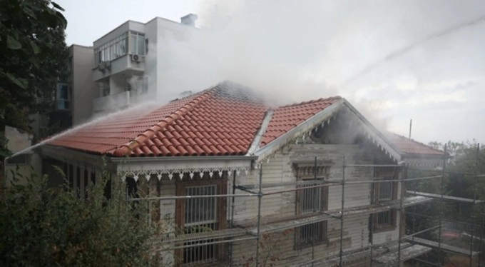 Bursa'da Ormancılık Müzesi'nin arka kısmında bulunan ve bir süredir restore edilen 2 katlı ahşap binanın çatısında henüz bilinmeyen nedenle yangın çıktı.