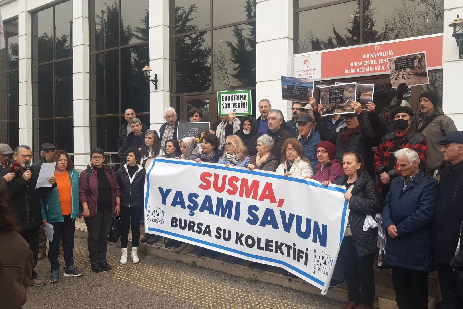 Bursa Su Kolektifi, Erzincan'ın İliç ilçesinde yaşanan altın madeni faciasına ilişkin Çevre, Şehircilik ve İklim Değişikliği İl Müdürlüğü önünde basın açıklamasında bulundu.