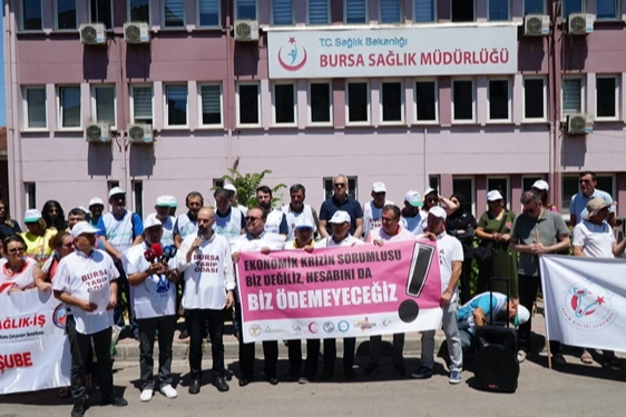 Aile Sağlığı Merkezleri çalışanlarına seyyanen zammın verilmesi ve gruplandırma personelinin bakanlık kadrosuna alınması için Bursa İl Sağlık Müdürlüğü önünde bir basın açıklaması gerçekleştirildi.