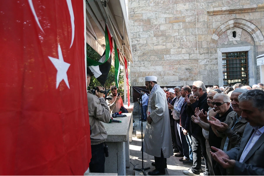 Balıkesir'de tarihi Zağnos Paşa Camisi'nde, İsrail'in saldırıları sonucu Filistin'de hayatını kaybedenler için gıyabi cenaze namazı kılındı.
