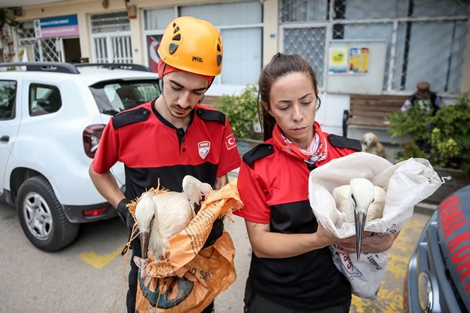 "Caminin etrafı sepetli aracın gelebileceği bir nokta değildi. Biz muhtarla irtibat halindeydik. Geldik ve gerekli istasyonlarla emniyetlerimizi aldık. Yavrulardan birini geri yuvaya koyduk. 4-5 gündür annenin bakmadığı yavruyu, görüştüğümüz yetkililerin bakım merkezine götürmemizin uygun olduğunu söylemesiyle aldık. Gerekli tedavilerin yapılmasını sağlayacaklar. İnşallah kendini toparlar ve doğaya salınır."