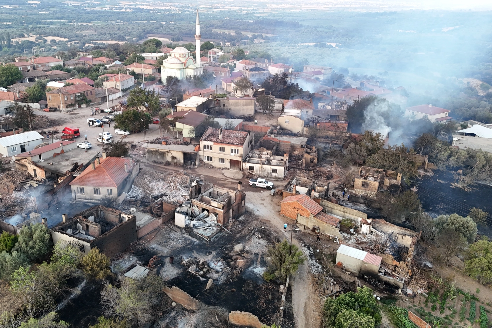 Çanakkale'nin Bayramiç ilçesinde çıkan orman yangınında, boşaltıldıktan sonra alevlere teslim olan Saçaklı köyünde dron ile görüntülendi. Edinilen bilgiye göre, henüz belirlenemeyen bir nedenle başlayan yangın, rüzgarın etkisiyle kısa sürede yerleşim alanlarına ulaştı. Saçaklı köyünde yaşayan vatandaşlar tahliye edilirken, yangın nedeniyle çok sayıda ev tamamen kullanılamaz hale geldi. Köyde meydana gelen zarar sabah saatlerinde dron ile görüntülendi. Bölgede ekipler tarafından müdahaleler devam ediyor.