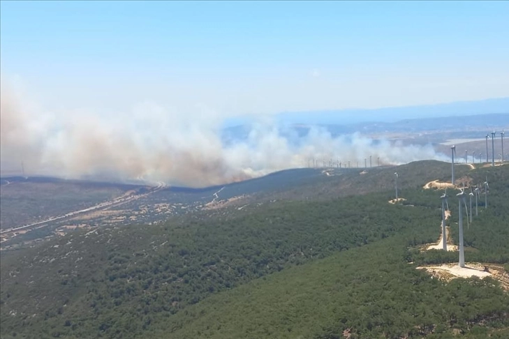 İzmir Orman Bölge Müdürlüğüne ait 3 uçak, 5 helikopter, 15 arazöz, 4 dozer ile İzmir Büyükşehir Belediyesine ait itfaiye araçlarıyla yangına müdahale ediliyor.