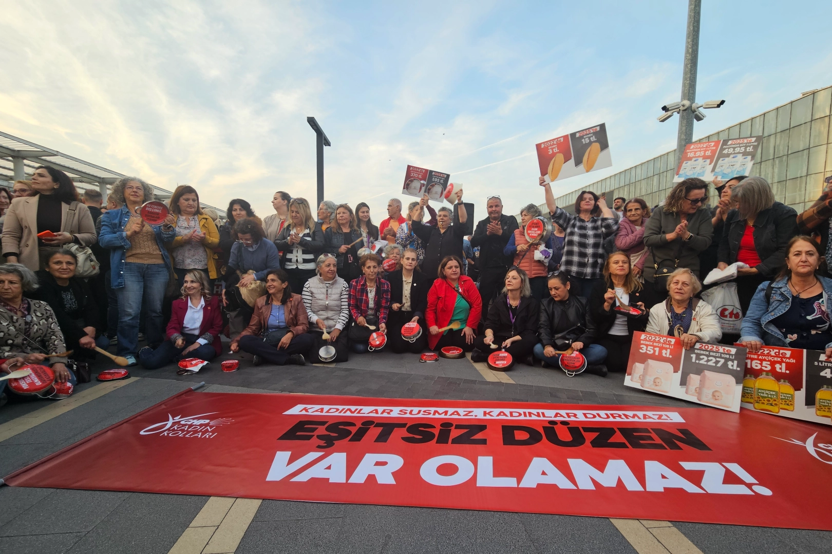 Eylemde, "Kadınlar susmaz, kadınlar durmaz", "Boş tencere kaynamaz", "Açlık değil, onurlu yaşam, yoksulluğa teslim olmayacağız" sloganları atıldı.