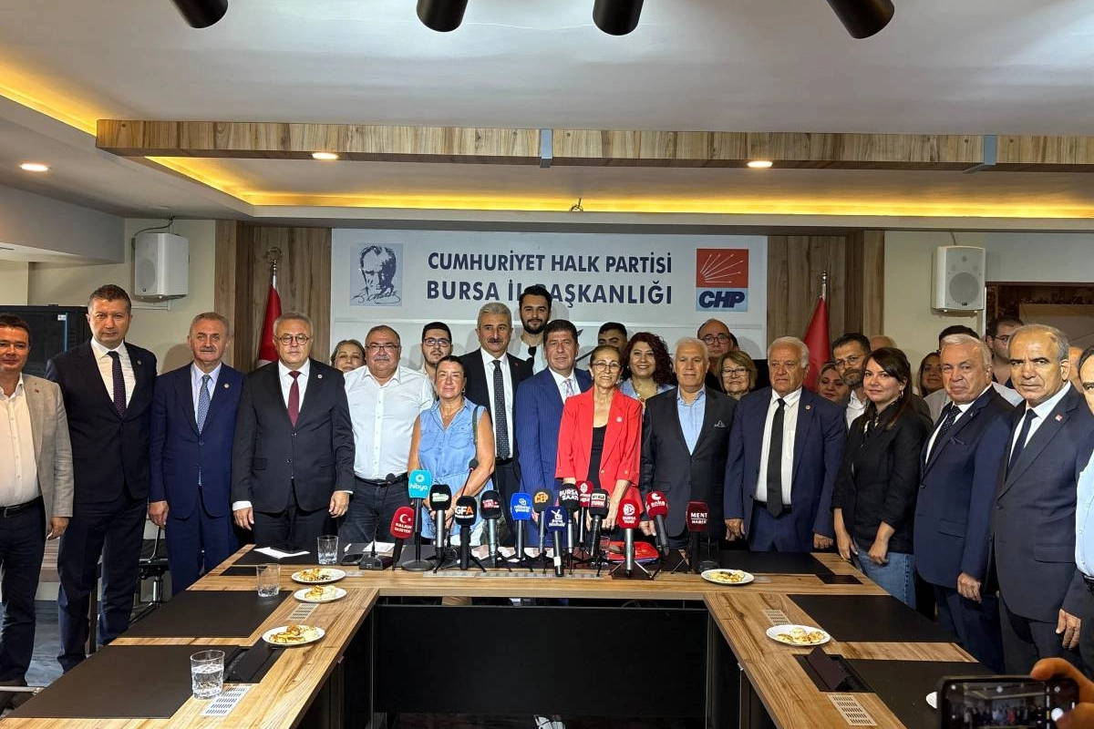 CHP'li milletvekilleri ve parti yöneticileri, Bursa'da düzenlenen ortak basın toplantısında parti programı hazırlık sürecine ve belediyelere yönelik hukuk dışı karşı halkın doğru bilgilendirmesi amacıyla başlatılan saha çalışmalarının detaylarını kamuoyuyla paylaştı.