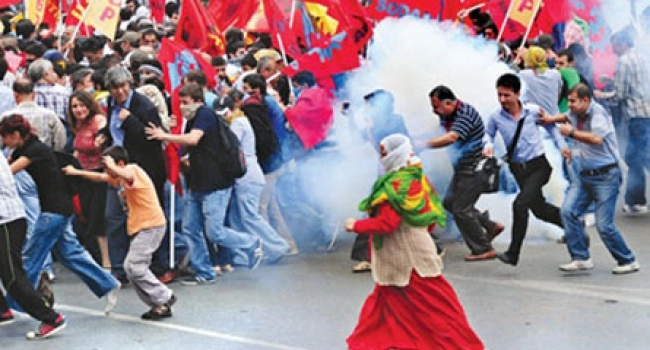 Geceyi bu çadırlarda geçiren grup, geçiş yasağı bulunan askeri bölgeden, Irak sınırına doğru yürüyüş yapmak istedi. Güvenlik güçlerinin uyarısına taşla karşılık veren gruba, müdahale edildi.