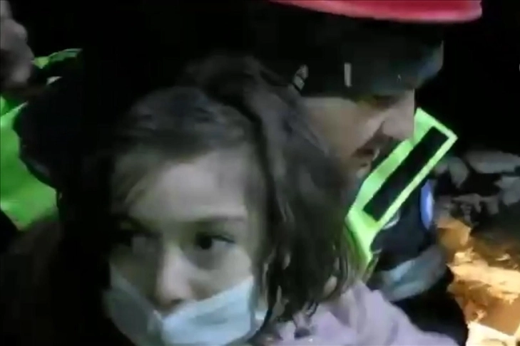 Adıyaman'da Siratut Mahallesi'nde yıkılan bir binanın enkazında çalışma yürüten ekipler, 7 yaşındaki Elif Ada'yı enkaz altından 65 saat sonra kurtardı.
