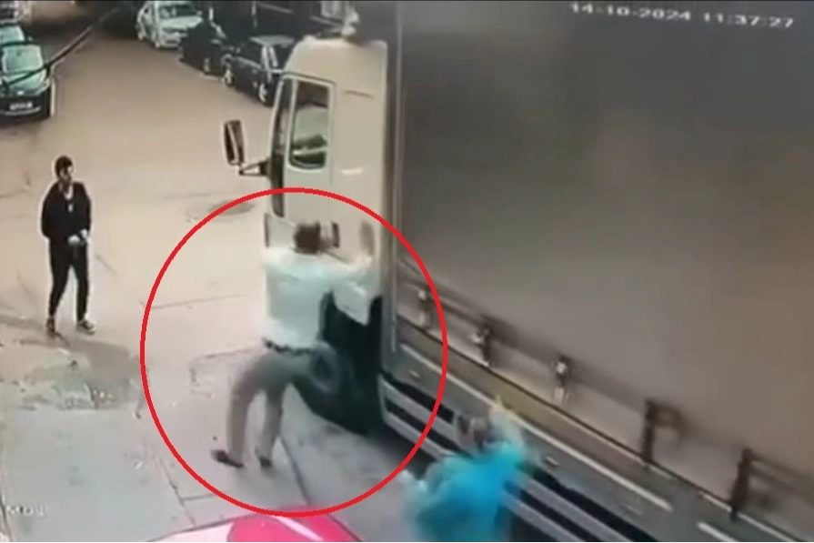 Kısa süre sonra hareket eden kamyonu gören vatandaşlar, duruma el attı. Bir vatandaş ise bazı tehlikeleri göze alarak kamyonun kapısını açıp araca binerek el frenini çekti.