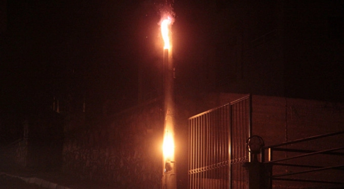 Dumlupınar Mahallesi Efes Sokak'taki elektrik direği, henüz öğrenilemeyen nedenle yanmaya başladı.