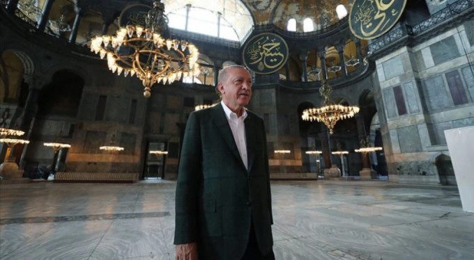 Cumhurbaşkanı Recep Tayyip Erdoğan, 24 Temmuz'da ibadete açılacak Ayasofya Camisi için Twitter hesabından video paylaştı.