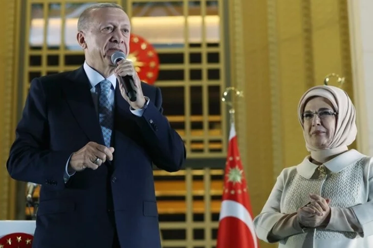 Cumhurbaşkanı Recep Tayyip Erdoğan, Yüksek Seçim Kurulunca geçici sonuçlara göre cumhurbaşkanı seçildiğinin açıklanmasının ardından Cumhurbaşkanlığı Külliyesi'nde toplanan vatandaşlara hitap etti.
