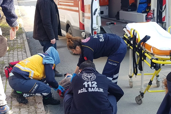 Yaklaşık 3 metre yükseklikten düşerek yaralanan kadın ile çocuğun yanına gelen komşuları, durumu 112 Acil Sağlık ve polis ekiplerine bildirdi.