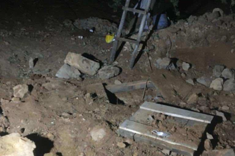 Olay yerinde, 5 kilogram amonyum nitrat, jeneratör, akü, 2 kürek, 2 kazma, merdiven, çapa, manivela çubuğu, keser, 3 demir çubuk, testere ve 7 metre kablo ile el yapımı patlayıcı yapımında kullanılan malzemeler ele geçirildi.