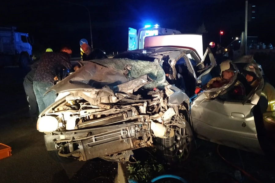 Olay yerine gelen itfaiye ekipleri, otomobilde sıkışan sürücü ile eşini bulundukları yerden çıkardı.