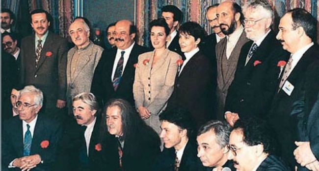 Zaman Gazetes'nde yayınlanan fotoğrafta Müjdat Gezen Erdoğan ve Gülen'le aynı fotoğraf karesinde poz verirken görülüyor.