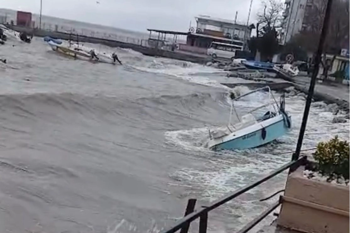 Şiddetli rüzgârın etkisiyle iskelelerde de hasar meydana geldi.