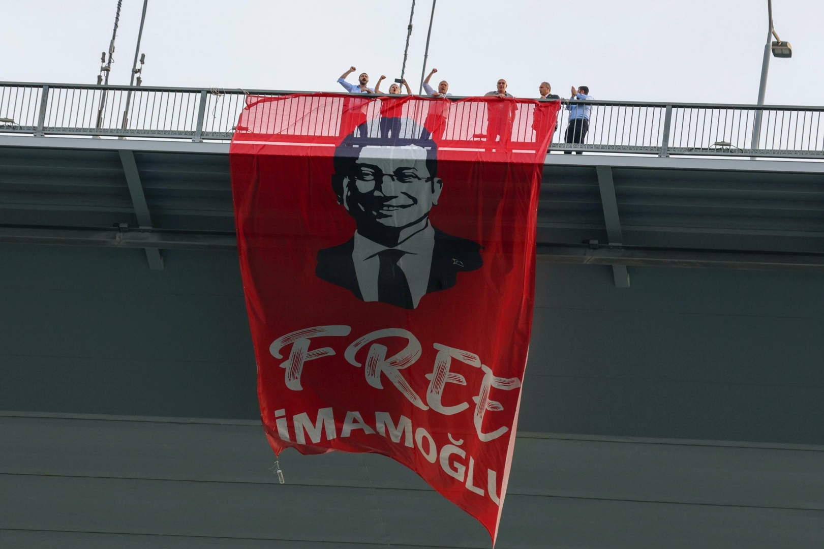 15 Temmuz Şehitler Köprüsü kuzey yol girişine bugün saat 19.40 sıralarında CHP’li milletvekilleri tarafından köprüden sarkacak şekilde üzerinde Ekrem İmamoğlu’nun siluetinin bulunduğu ‘Free İmamoğlu’ yazılı pankart asıldı. Boğaziçi Köprüleri Koruma Şube Müdürlüğü görevlileri tarafından olaya müdahale edilerek, pankart kaldırıldı. Pankartı asan kişilerin CHP Genel Başkan Yardımcısı Suat Özçağdaş, CHP Şanlıurfa Milletvekili Mahmut Tanal, İstanbul Milletvekilleri Nimet Özdemir ile Ali Gökçek, Tekirdağ Milletvekili İlhami Özcan Aygun ve Edirne Milletvekili Ahmet Baran Yazgan olduğu tespit edildi. Olaya ilişkin İstanbul Cumhuriyet Başsavcılığı tarafından soruşturma başlatıldı.