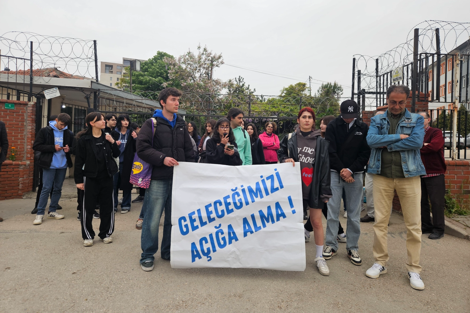 Bursa'da Osmangazi Gazi Anadolu Lisesi önünde öğretmenlerin görev yerlerinin değiştirilmesine ilişkin basın açıklaması ve eylem düzenlendi. 16.30'da biraraya gelen öğrenciler, "Yaşasın öğrenci dayanışması", "Direne direne kazanacağız", "Bu böyle gitmez, lise biat etmez" sloganları attı.