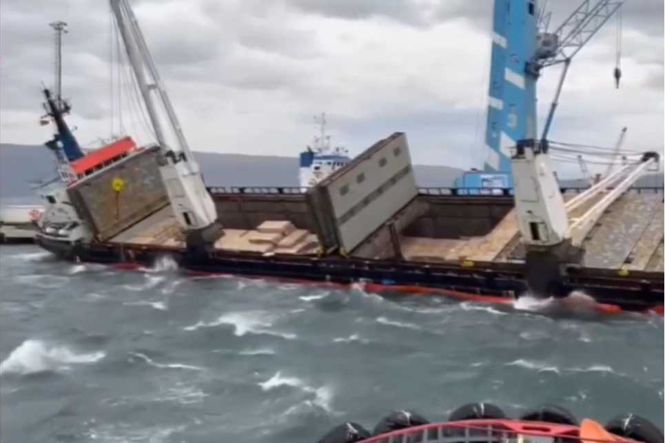 Bursa'nın Gemlik ilçesinde, limanda yükleme yaparken yan yatan gemi uzman ekipler tarafından römorkle kurtarıldı.