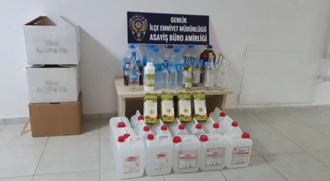 Sahte içki ve malzemelere el koyan ekipler, olayla ilgili İ.O'yu gözaltına aldı.