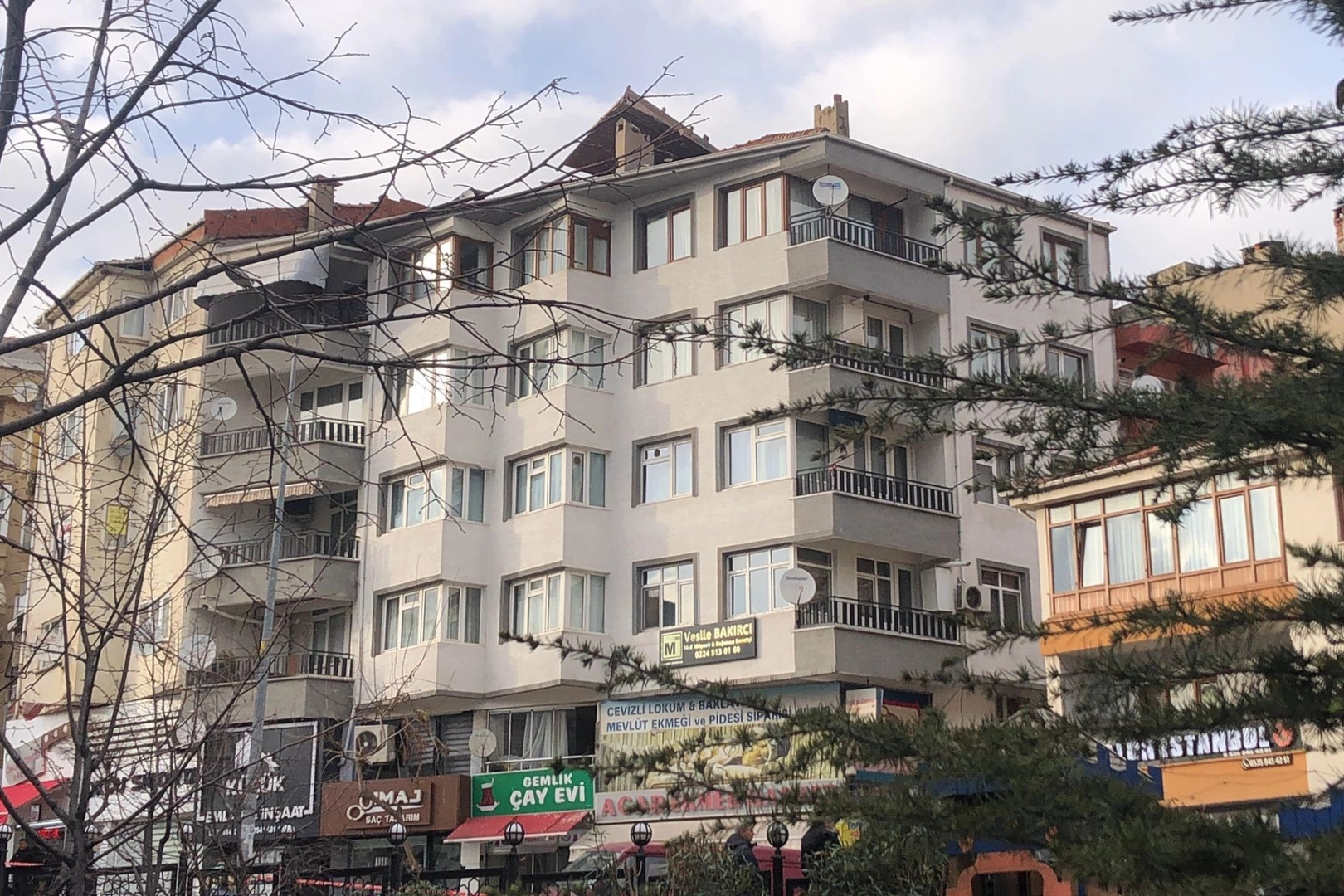 Bursa'nın Gemlik ilçesinde binanın terasında bulunan sedir, şiddetli rüzgarın etkisiyle başka bir binanın çatısına uçtu.