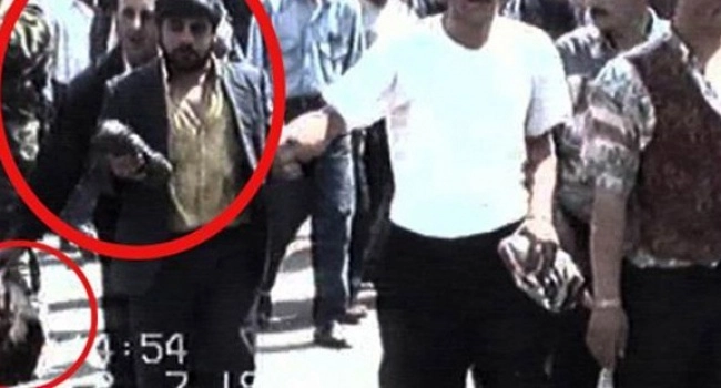 Kayıtlara göre kalabalık 14.40'dan itibaren yürüyüşe geçiyor. 14.44'te alınan görüntüde, takkeli ve şalvarlı kişiler kalabalık içinde yürürken görülüyor. Aynı dakikadaki kayıtta, elinde bir bidon bulunan 'gösterici' dikkatleri çekiyor. Elinde bidon bulunan kişi de video görüntülerden üretilmiş bu fotoğrafta kırmızı çember ile işaretlenmiş. İlerleyen dakikalara ait görüntüler de ise yürüyen kalabalığı durdurmaya çalışan az sayıdaki polis görülüyor.
