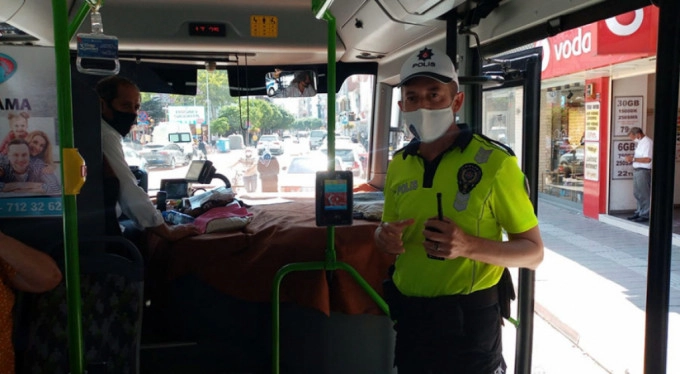Yolcu kapasitesi ve maske denetiminde bulunan ekipler, yolcu ve sürücüleri koronavirüs tedbirleriyle ilgili bilgilendirdi.