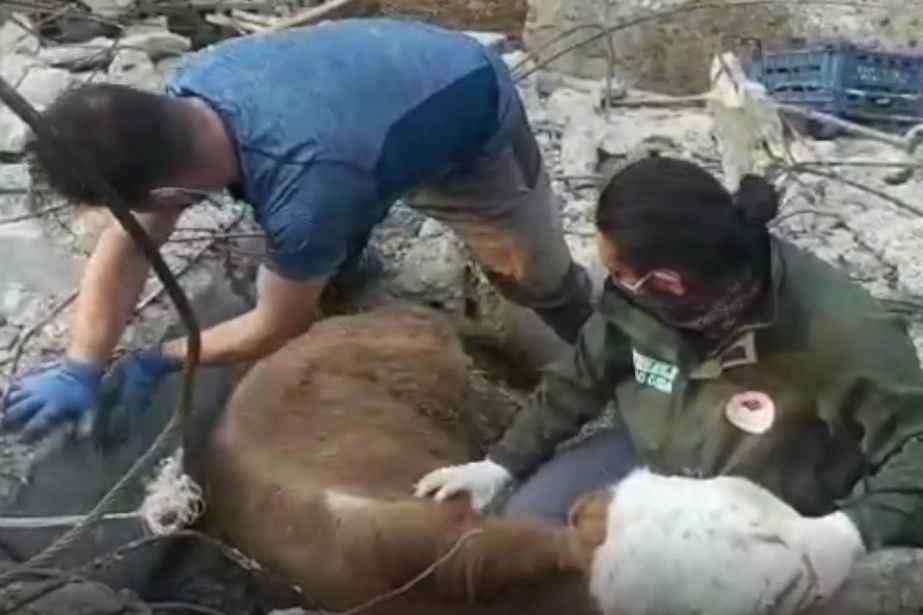 Kahramanmaraş merkezli depremlerden sonra bölgede görev yapan Tarım ve Orman Bakanlığı ekiplerine dün Antakya ilçesine bağlı kırsal Üzümdalı Mahallesi'ndeki bir çiftlikte yıkıntıların arasında canlı hayvanın bulunduğu bildirildi.