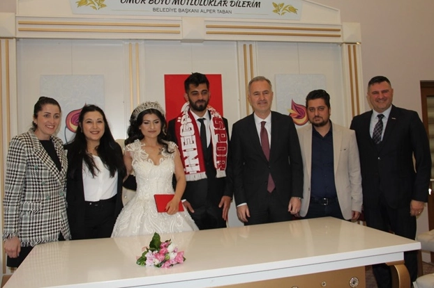 Belediye Başkanı Alper Taban, nikah törenindeki konuşmasında, bir yandan büyük üzüntü duyduklarını belirterek, hayatın devam ettiğini ve genç çiftin mutlu gününde bir araya geldiklerini söyledi.