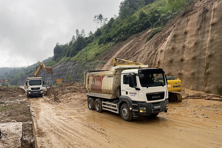 Kentte önceki gün etkisini göstermeye başlayan kuvvetli yağışın ardından dün Bolu Dağı Tüneli çıkışında yaşanan toprak kayması sonucu kapanan yolu açma çalışmaları, sabahın ilk ışıklarıyla başlatıldı.