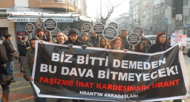 "Biz bitti demeden bu dava bitmeyecek. Faşizme inat kardeşimiz Hrant" yazılı pankartla yürüyen grup sık sık "Faşizme inat kardeşimsin Hrant", "Katil devlet hesap verecek", "Hepimiz Hrantız, hepimiz Ermeniyiz", "Susma, haykır halkla kardeştir", "Katiller belli, hesap soracağız", "Ya adalet ya kıyamet" şeklinde sloganlar attı.
