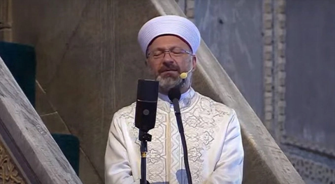 Diyanet İşleri Başkanı Erbaş'ın, Diyanet'in resmi internet sitesinde yayımlanan hutbenin dışına çıktığı bu sözleri dikkat çekti. Erbaş'ın, "Vakıf malı dokunulmazdır, dokunanı yakar! Vakfedenin şartını çiğneyen lanete uğrar" ifadeleri, Ayasofya'yı müze yapma kararı alan Mustafa Kemal Atatürk ve Cumhuriyetin kurucularını hedef aldığı şeklinde yorumlandı.