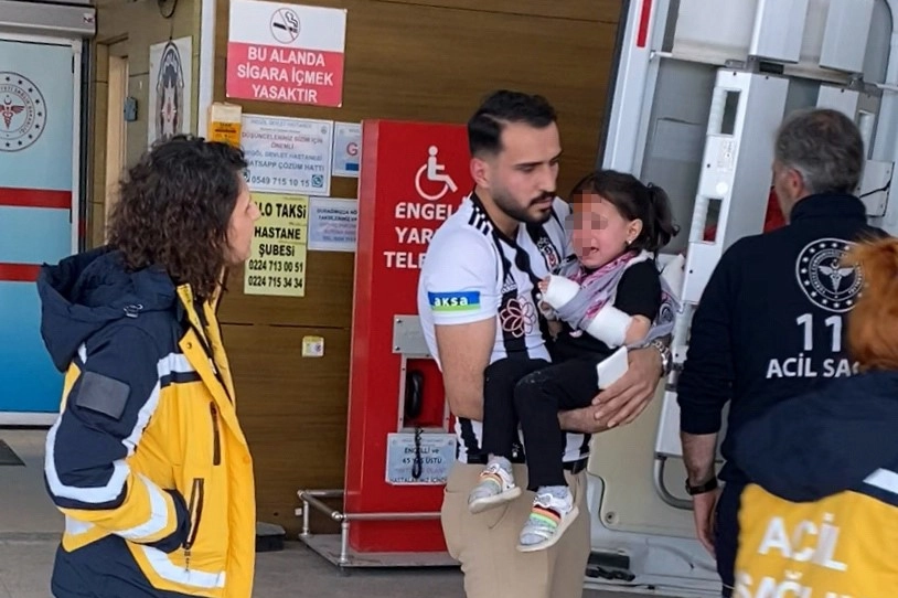 Yaralı çocuk babası Hamdullah G. tarafından özel araçla İnegöl Devlet Hastanesine kaldırıldı. Beyin kanaması geçirdiği öğrenilen küçük çocuk, buradan ambulansla Bursa Yüksek İhtisas Eğitim ve Araştırma Hastanesine sevk edildi.