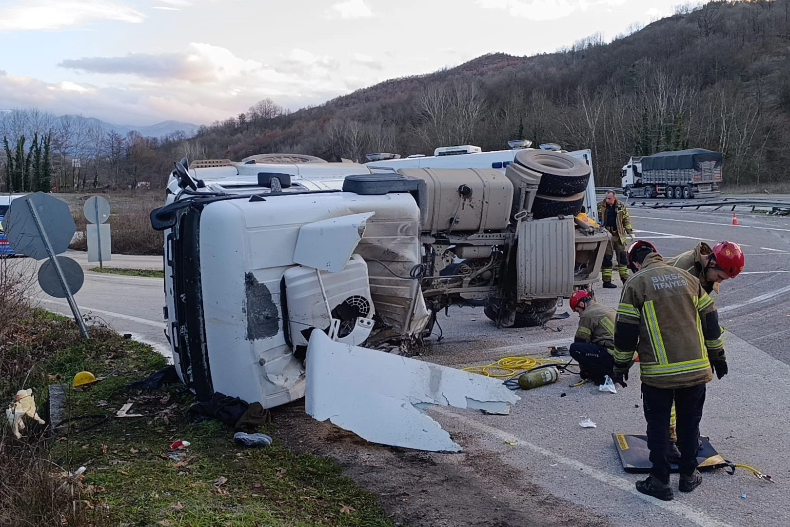 Kaza, dün saat 17.30 sıralarında Bursa-Ankara kara yolu Yeniköy Mahallesi mevkiinde meydana geldi. Edinilen bilgilere göre, Bozüyük'ten İnegöl yönüne seyreden Mehmet Gökbayrak (65) idaresindeki 16 AGK 90 plakalı beton tankeri, virajda sürücüsünün kontrolünden çıkarak devrildi. Tankerin beton yüklü kısmı refüje savrulurken, çekici kısmı ise yolun karşı şeridine devrildi. Kazada araç içerisinde sıkışan sürücü ağır yaralandı. İhbar üzerine olay yerine jandarma, itfaiye ve sağlık ekipleri sevk edildi. Ekipler tarafından sıkıştığı yerden çıkarılan yaralı sürücü, ambulansla İnegöl Devlet Hastanesi'ne kaldırıldı. Sağlık durumunun ciddiyetini koruduğu öğrenilen Gökbayrak, yapılan ilk müdahalenin ardından Bursa Uludağ Üniversitesi Tıp Fakültesi Hastanesi'ne sevk edildi. Gökbayrak, doktorların tüm müdahalelerine rağmen kurtarılamadı. Kaza nedeniyle Bursa-Ankara kara yolunda trafik bir süre kontrollü olarak sağlanırken, jandarma ekipleri kazayla ilgili inceleme başlattı.