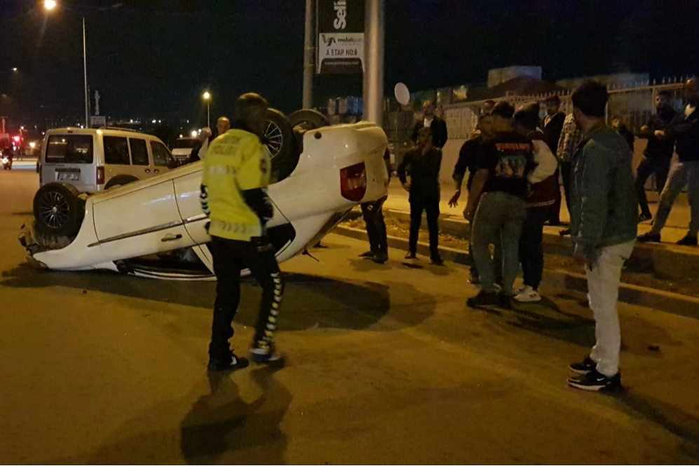Kazada, ters dönen araçta bulunan Muhammet A. (19) yaralandı. Sürücü Ömer H. ise kazayı yaralanmadan atlattı.