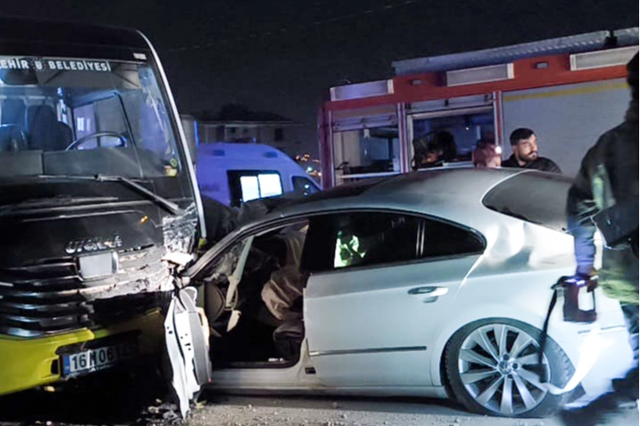 Bursa'nın İnegöl ilçesinde Selami A'nın kullandığı 16 M 06145 plakalı halk otobüsü ile Muhammed Ö. idaresindeki 16 ACY 695 plakalı otomobil, Akhisar Mahallesi Hüsnü Güven Bulvarı üzerinde çarpıştı.