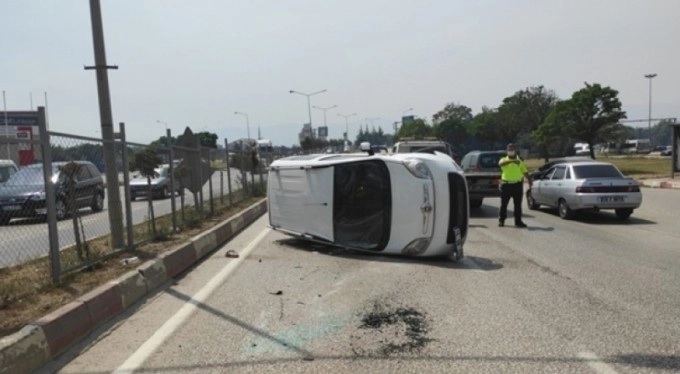 İnegöl'deki ilk kaza, Alanyurt yolu üzerinde meydana geldi. Görkem D. (21) idaresindeki 16 UN 174 plakalı hafif ticari araç, sürücüsünün direksiyon hakimiyetini kaybetmesi ile orta refüje çarparak takla attı.