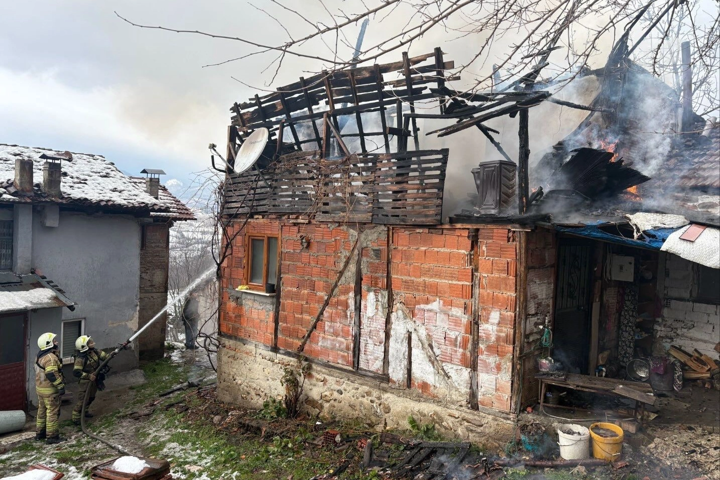 Yangın sonucunda evin çatısı kullanılamaz hale gelirken, evin içinde de maddi hasar meydana geldi.