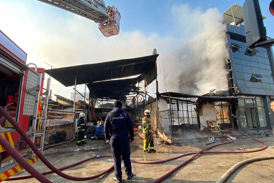 Yangın, çevredeki iş yerlerine sıçramadan itfaiye ekipleri tarafından söndürüldü.