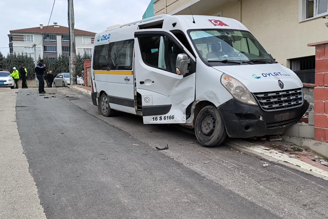 Bursa'nın İnegöl ilçesinde Çetin T. (45) idaresindeki 16 S 6166 plakalı servis minibüsü, Alanyurt Yeni Mahalle'de Sancak ile Gülfidan sokaklarının kesişiminde, Yusuf G'nin (21) kullandığı 77 AD 038 plakalı hafif ticari araçla çarpıştı.