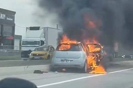 Durumu fark eden sürücü aracı hemen yol kenarına çekerek itfaiyeye haber verdi. Bu esnada alevler tüm aracı sardı.