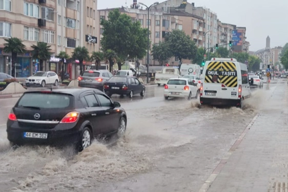 İlçede öğle saatlerinde etkili olan yağış sebebiyle kent merkezi ve kırsal mahallelerdeki yollarda su birikintileri oluştu.