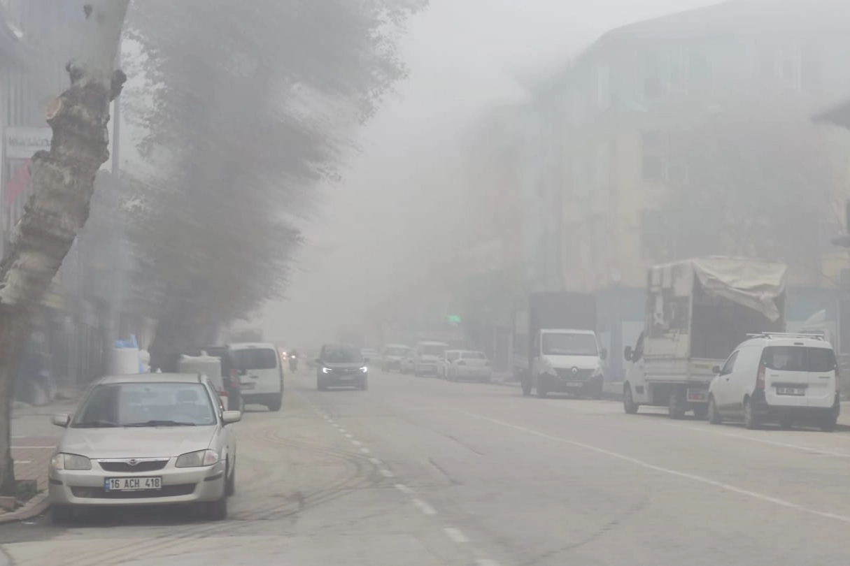 Bursa'nın İnegöl ilçesinde sabah saatlerinde etkili olan sis, görüş mesafesini düşürdü.