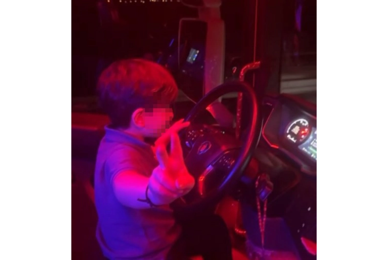 Bursa'nın İnegöl ilçesinde bir baba 7 yaşındaki oğlunu tırın direksiyonuna oturtarak trafikte aracı kullanmasın izin verdi. Kendisi de yolcu koltuğuna oturan baba hem oğlunu yönlendirdi hem bu anları kameraya kaydederek sosyal medyada paylaştı.