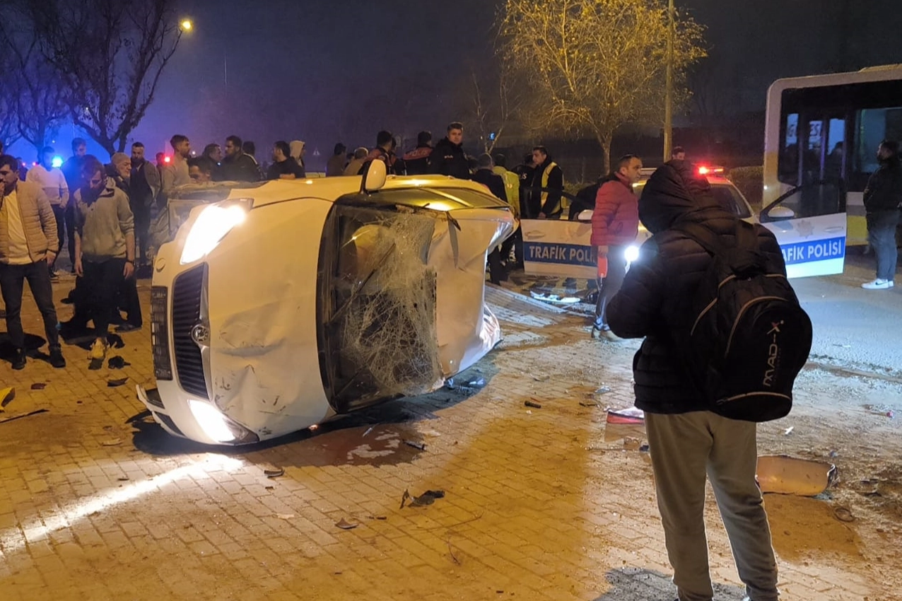 Kazada otomobil sürücüsü Y.Y, motosiklet sürücüsü A.H, polis memurları A.Ç. ile M.Ş. yaralandı.