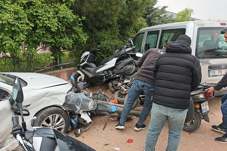 17. Cadde üzerinde seyir halinde olan Bayram T. (26) yönetimindeki 34 RY 5266 plakalı otomobil ile 19. Cadde üzerinde seyir halinde olan Özgür Ş. (28) yönetimindeki 16 AEB 817 plakalı otomobil çarpıştı. Çarpışmanın etkisiyle savrulan 34 RY 5266 plakalı otomobil, park halindeki 16 BKD 248, 16 BAM 491, 16 AVC 942, 16 AYH 501 ve 16 BHS 483 plakalı motosikletler ile 16 PH 466 hafif ticari araca çarparak durabildi.