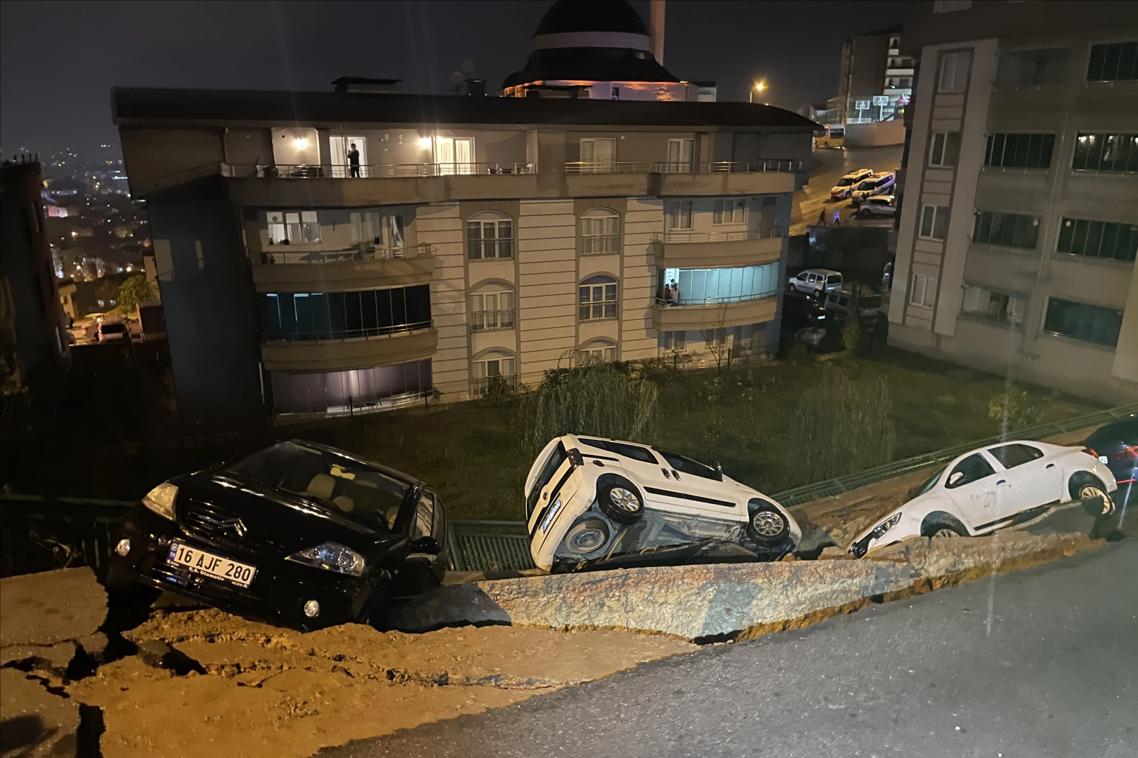Polis ekipleri bölgede geniş güvenlik önlemi alırken, çöken istinat duvarının yanındaki 5 katlı apartman tedbir amaçlı boşaltıldı.