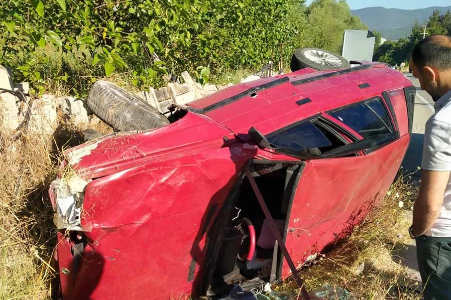 Orhaneli-Bursa karayolu Gürgür Çeşmesi mevkisinde Bursa yönüne seyreden Ali Baral (38) yönetimindeki 16 BN 529 plakalı otomobil kontrolden çıkarak yol kenarındaki istinat duvarına çarptı.