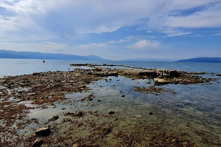 Bazilikanın büyük bölümü gölün yüzeyinde görünür hale gelerek kıyıyla birleşti.